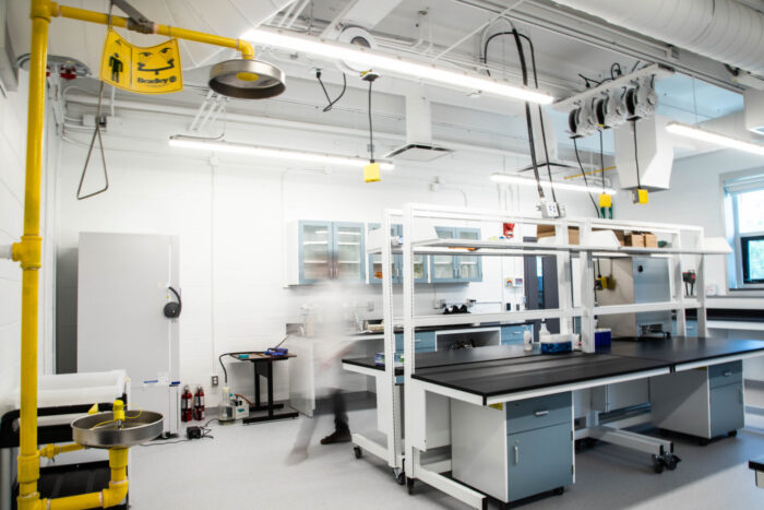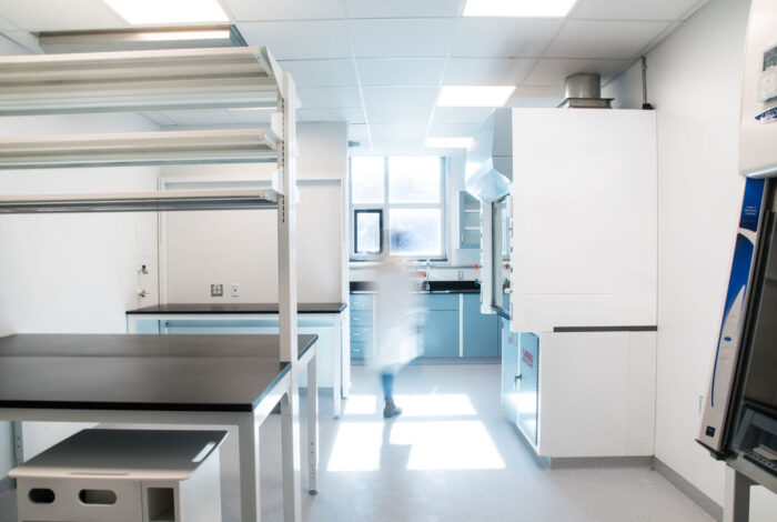 The laboratory component involved comprehensive updates to all of the original 1950s labs to create modern wet and dry labs that suit current and future needs. We began with a detailed audit of the facility and meetings with the user groups, compiling a building program, room data sheets, and equipment lists for each lab. This process also included labs from the Richards Building that would be relocated to the Environmental Cluster.